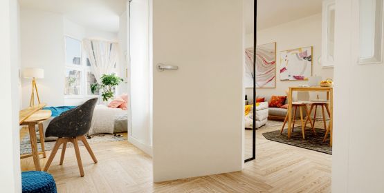 En esta rehabilitación completa, utilizamos el espacio como un lienzo en blanco, distribuyendo la superficie de diferentes maneras. Las opciones van desde dos tipologías de vivienda (A y B), dúplex y estudios tipo loft, cada uno de ellos diseñado pensando en el gusto del cliente.